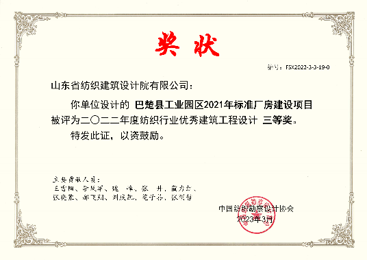 2022年紡織行業(yè)優(yōu)秀建筑工程設(shè)計(jì)三等獎(jiǎng)